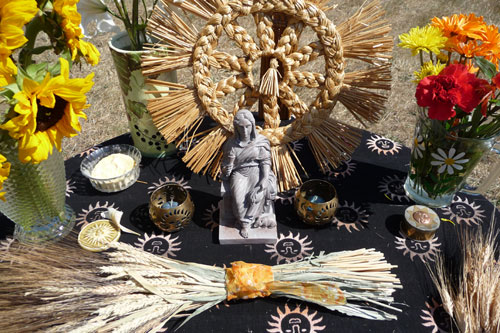 proponiendo la realización de una diosa o figura de la cosecha que bendiga